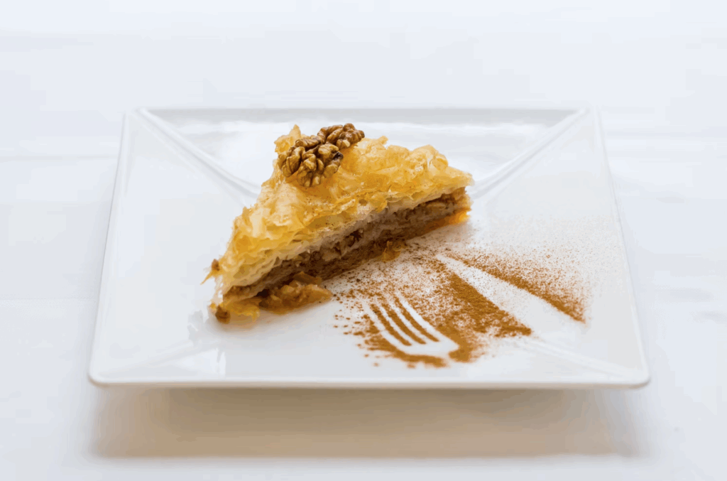 Süßes Blätterteiggebäck mit Nüssen und Honig, ein traditionelles Dessert.